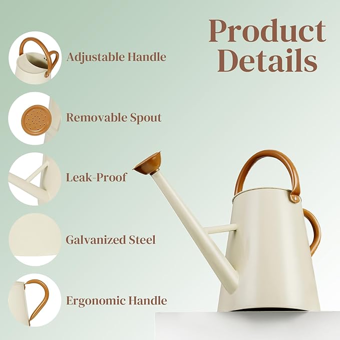 - Removable spout design: Features a convenient removable spout that allows for easy cleaning and storage. This durable galvanized metal watering can features a detachable spout that lets you switch between gentle shower watering and direct water flow-perfect for large outdoor plants among all watering cans.