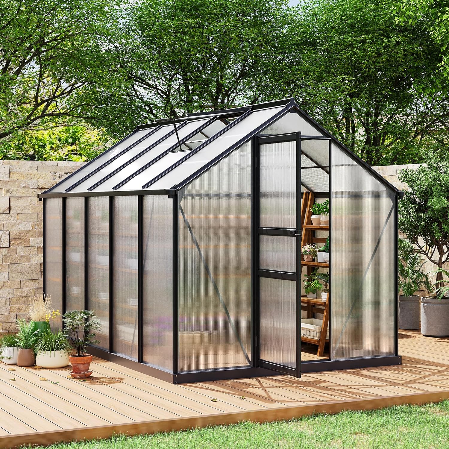6×10FT Polycarbonate Greenhouse for Outdoors, Large Walk in Green House Kit and Winter Garden Planting, Enhanced Aluminum Green Houses for Outside to Protect Vegetables or Plants