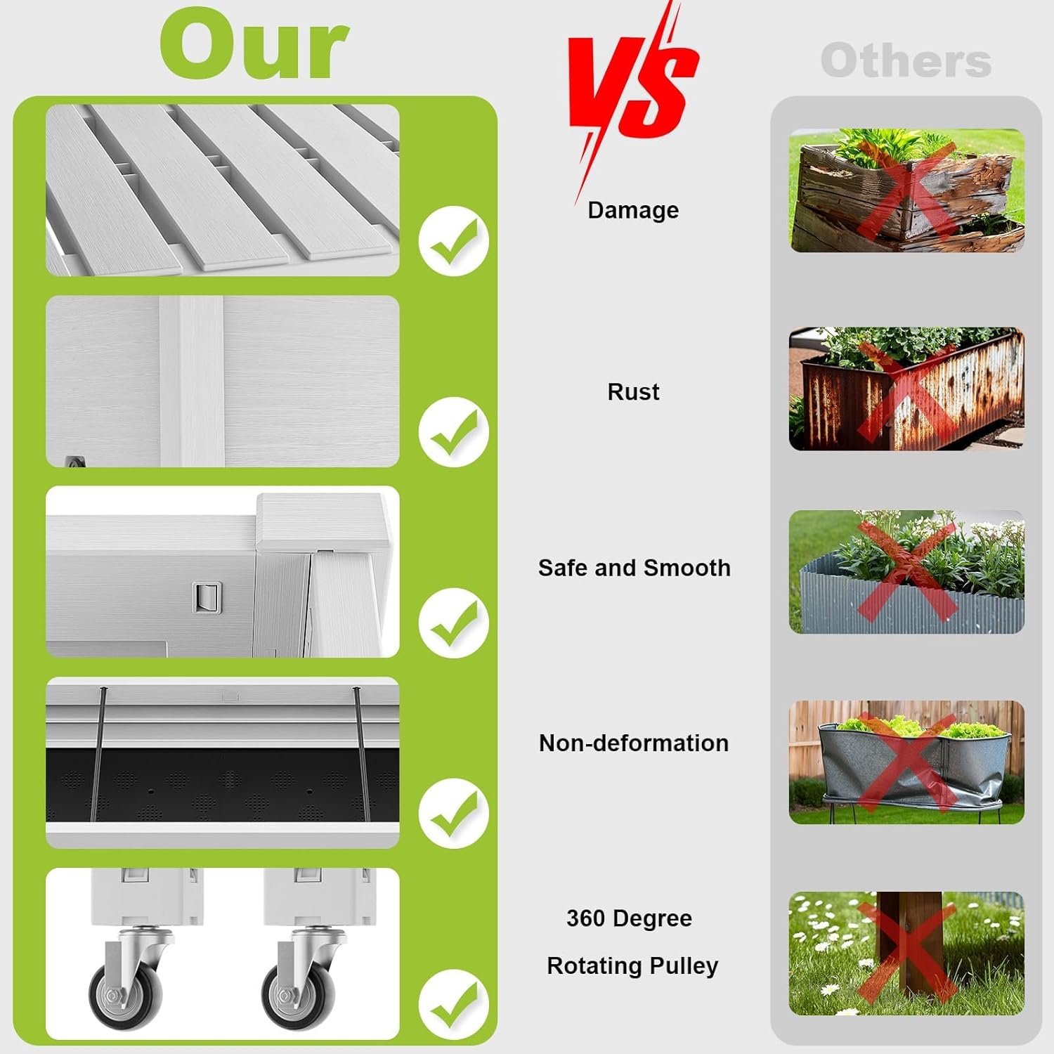 - EASY TO MOVE: Comes with a set of locking wheels to move the planter from place to place and capture just the right amount of sun and shade