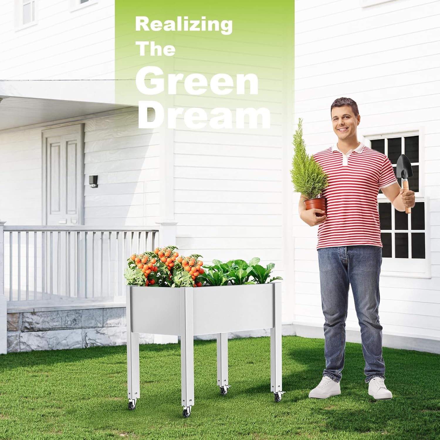 - COMPACT AND PRACTICAL SIZE: Measuring 30.34 inches (L) x 17.72 inches (W) x 28.9 inches (H), it provides enough space for planting while remaining small enough to be placed on a balcony, patio, or any limited space to maximize every inch of the area