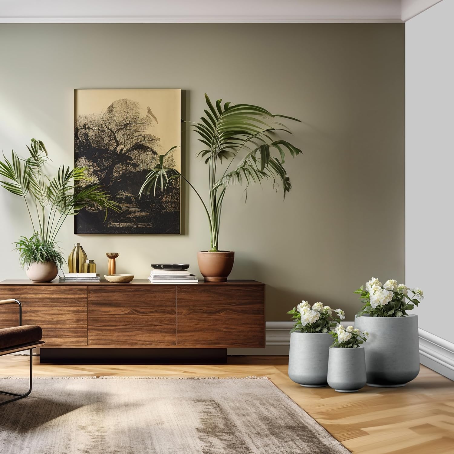 Kante 15.3"+11.6"+8.2" Dia Round Concrete Planter, Large Outdoor Indoor Planter Pots Containers with Drainage Holes and Rubber Plug for Home Garden Patio, Gray Concrete