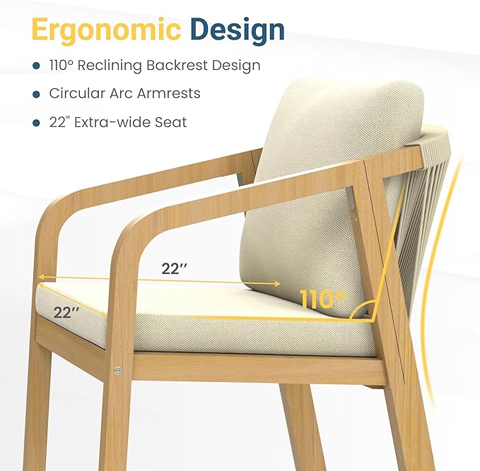 - 【Practical and Low-Maintenance】Naturally rich in protective oils, acacia wood offers inherent resistance to moisture and water. Routine cleaning requires nothing more than a gentle wipe with a damp cloth. Additionally, the removable cushion covers allow for simple maintenance, ensuring both practicality and lasting elegance.