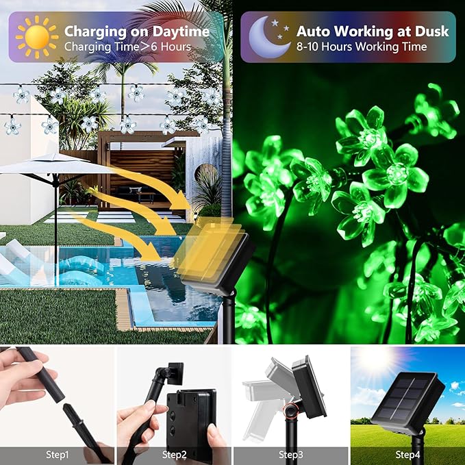- 【Effortless Solar Power】Say goodbye to cords and bills! This light powers up automatically with built-in solar panels. It features auto-on at dusk/off at dawn technology, providing up to 8-10 hours of soft, ambient lighting after a full day's charge.