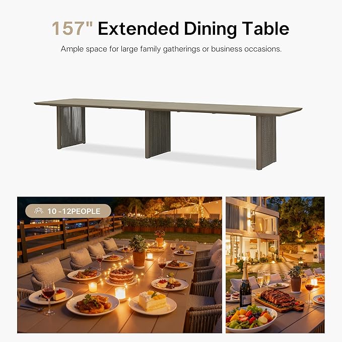 - Complete 11-Piece Set: Includes 1 dining table (157.48"L x 40.16"W x 29.92"H) and 10 chairs (22.64"W x 21.26"D x 27.95"H), ideal for family and friends gatherings.