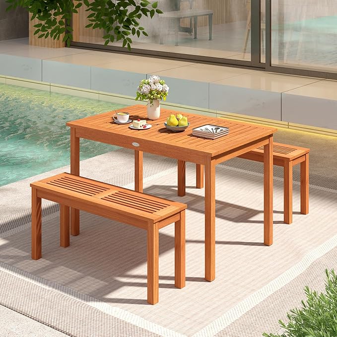 - Sturdy & Reliable Build: Designed with a strong frame, this outdoor wood table offers stable and dependable support, capable of withstanding daily use. Moreover, the reinforced structure ensures extra stability.