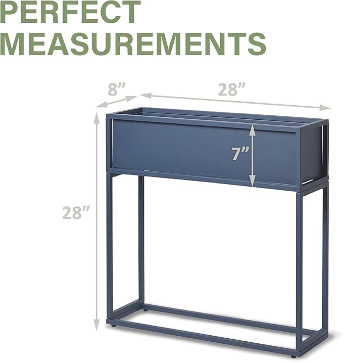 - ✅ Ergonomic Design - The 28-inch tall design with raised planter boxes on legs gives gardeners a comfortable gardening experience, minimizing back and knee strain while tending to your above-ground garden bed. Great Size: 28"L x 8"D x 28"H planter with 26.6"L x 7"D x 7"H inside box dimensions.