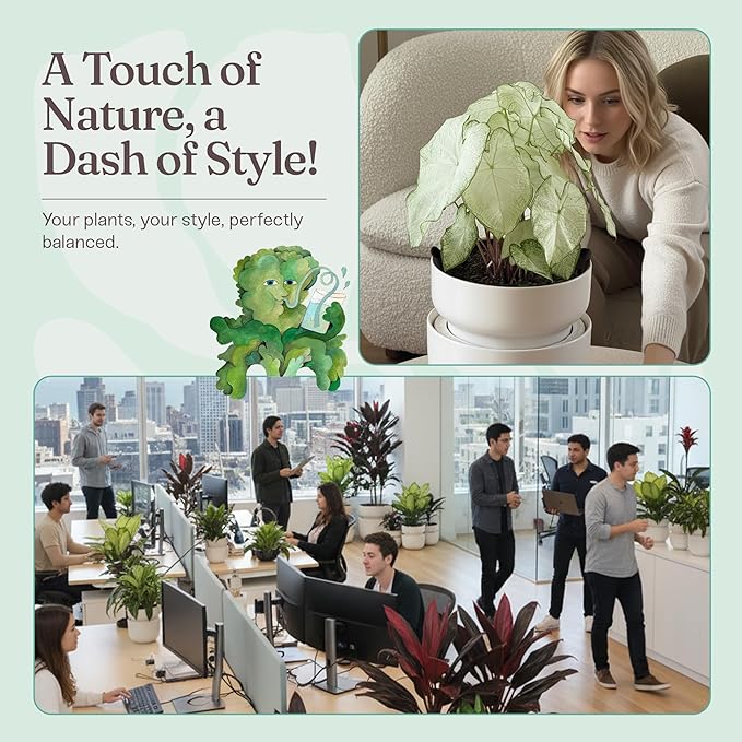 - Self-Watering System for Effortless Hydration: Integrated water reservoir and wick system provide steady moisture, keeping plants consistently hydrated with minimal upkeep.
