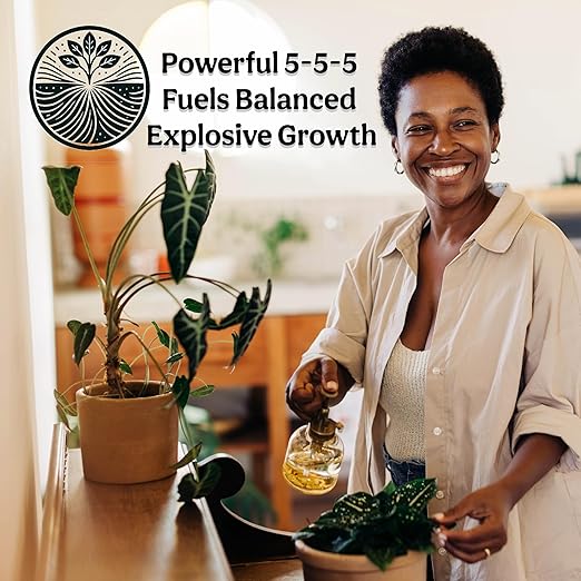 - STRONGEST 5-5-5 ORGANIC LIQUID FERTILIZER – The only true 5-5-5 organic indoor plant fertilizer and plant food. Professional-grade yet gentle; feeds instantly without burn for fast growth, greener leaves, and strong roots in houseplants, tropicals, and potted plants; ideal daily indoor use. Boosts nutrients and vigor with balanced NPK. 12oz treats 75 gallons