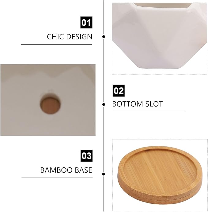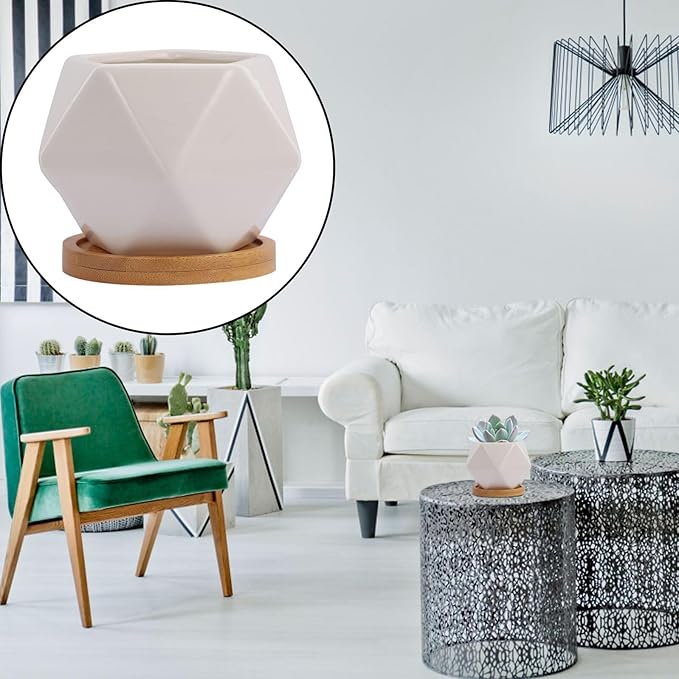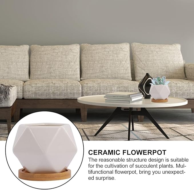 3 Sets Ceramic Succulent Flowerpot with Tray Geometric Bonsai Planter Pots for Indoor Succulents Seedling Pots with Air Permeability Cute Home Garden Decor