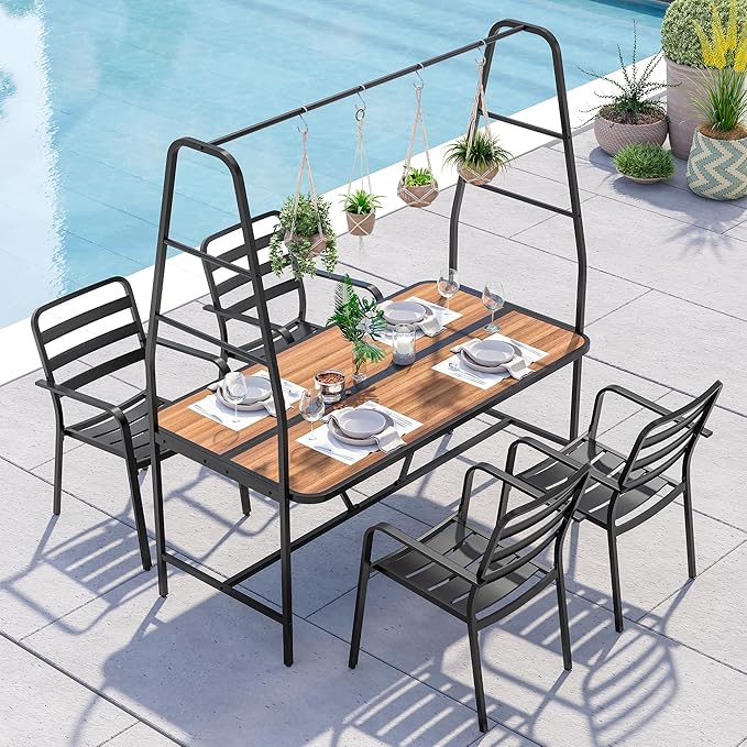 - 【Durable & Stable】Crafted with power-coated steel for rust resistance and strength, the wood-grain table surface is weather resistant, scratchproof and fade-proof. Built to last, this sturdy table frame supports up to 165 lbs with ease.