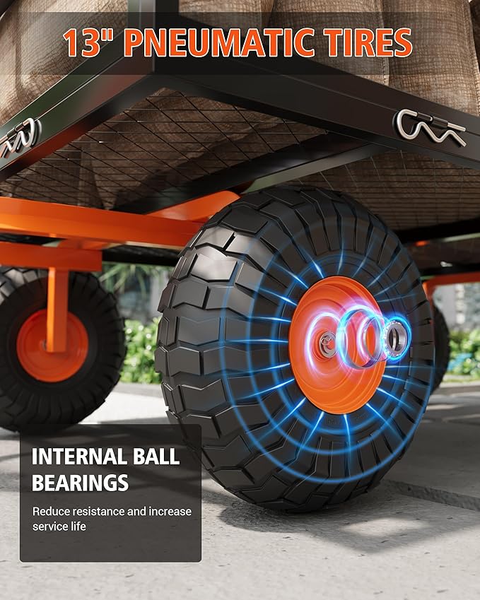 - [All-Terrain Performance] Equipped with 13-inch pneumatic tires that conquer grass, mud, snow, and rough terrain. Advanced vibration dampening ensures smooth, stable rides on slopes while minimizing tip-over risks and protecting your cargo during transport.
