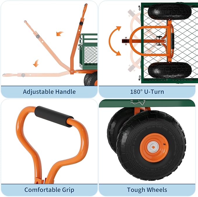 - [Enhanced Maneuverability] 180° swivel handle with rubber washers provides flexible steering and firm grip control. Navigate narrow garden paths and tight corners effortlessly, requiring minimal effort for superior operational control.