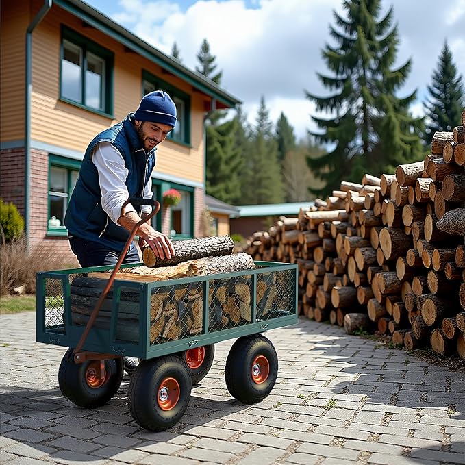 - [All-Terrain Performance] Equipped with 13-inch pneumatic tires that conquer grass, mud, snow, and rough terrain. Advanced vibration dampening ensures smooth, stable rides on slopes while minimizing tip-over risks and protecting your cargo during transport.